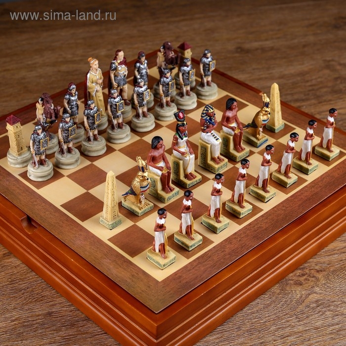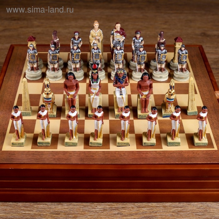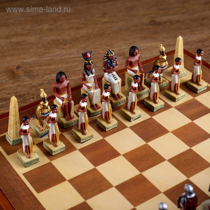 Шахматы деревянные подарочные сувенирные "Битва за Египет", 36 х 36 см, король h-8 см, пешка h-6 см