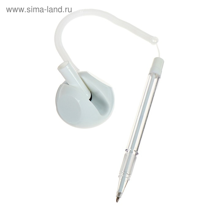 Ручка шариковая 0.5 мм на подставке "Стоп" с липучкой и шнуром, стержень синий, корпус БЕЛЫЙ
