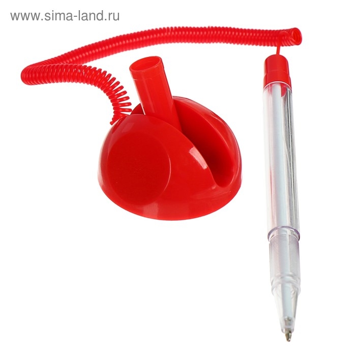 Ручка шариковая 0.5 мм на подставке "Стоп" с липучкой и шнуром, стержень синий, корпус КРАСНЫЙ (штрихкод на штуке)