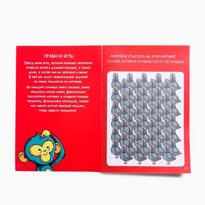 Вас ждут картинки с большим количеством изображений. Среди них нужно найти заданных персонажей или предметы. Только будьте внимательны, сложность заданий повышается с каждой страницей книги.