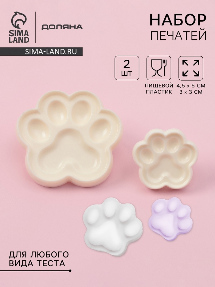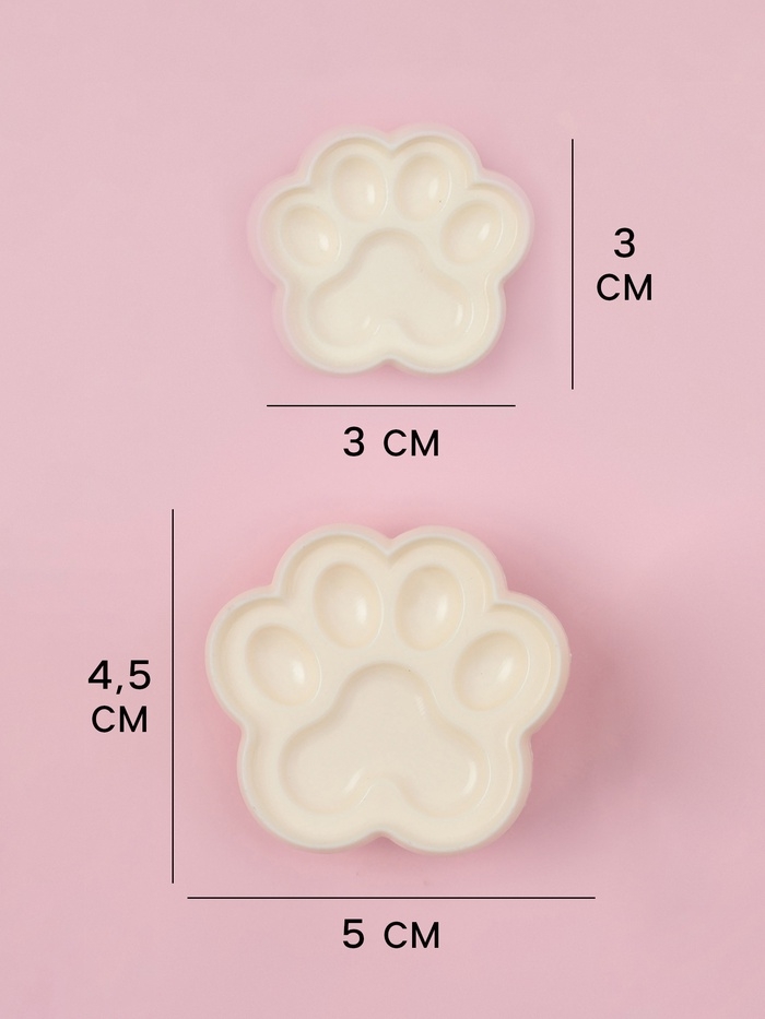 Печати для теста и мастики Доляна «Лапы», набор 2 шт, 4,5×5/ 3×3 см, пластик, молочные