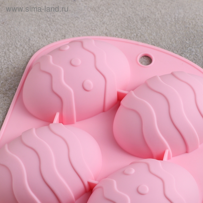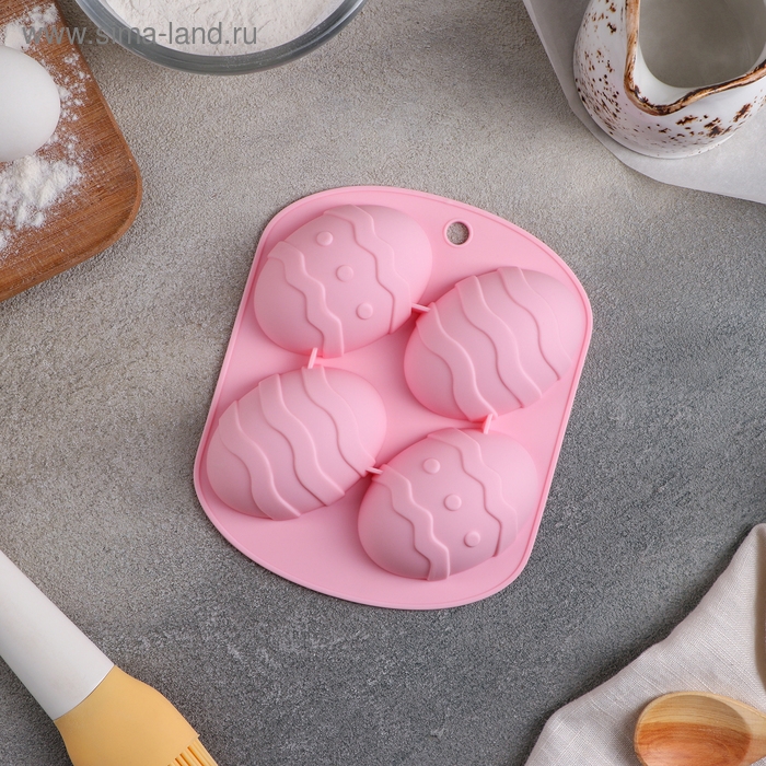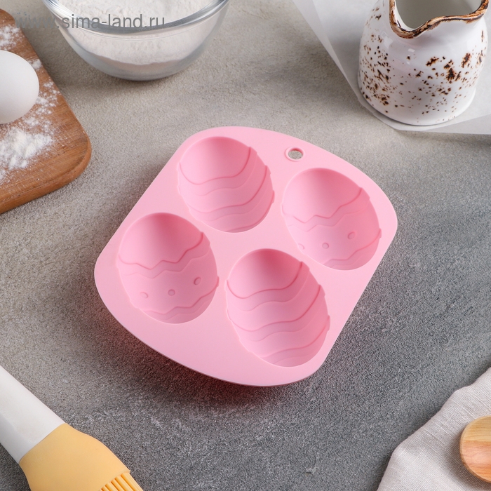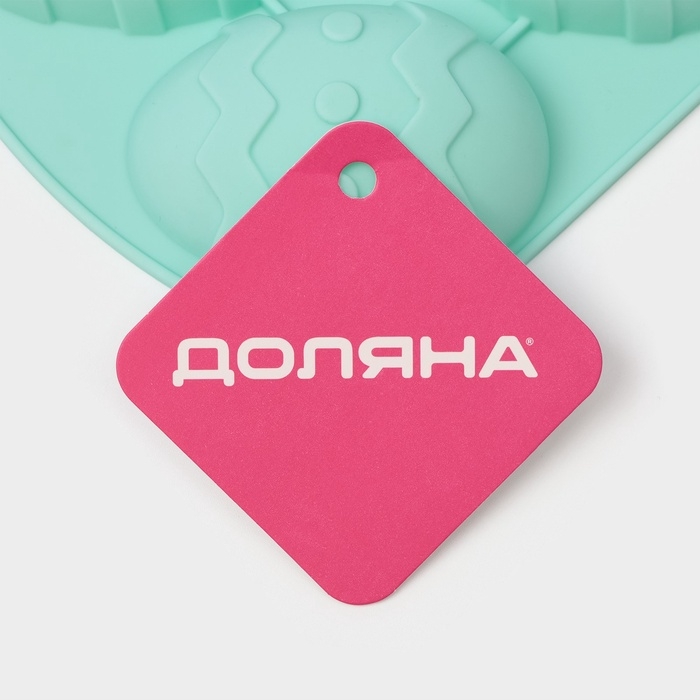 Форма для выпечки Доляна «Пасха. Пасхальное яйцо», 15×12,6×2,5 см, 4 ячейки, силикон, бирюзовая