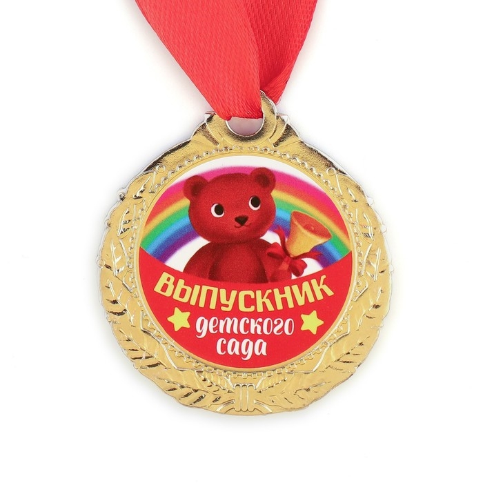 Медаль детская на Выпускной «Выпускник детского сада», на ленте, золото, металл, d = 4 см