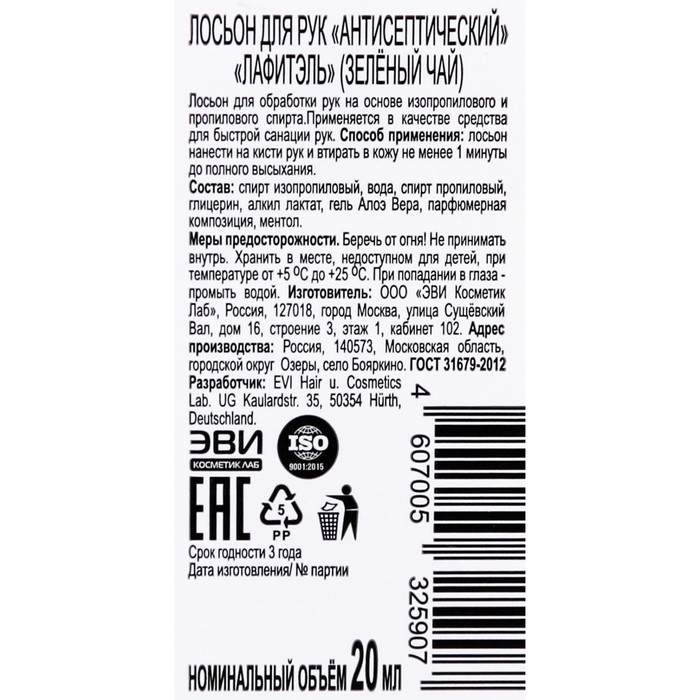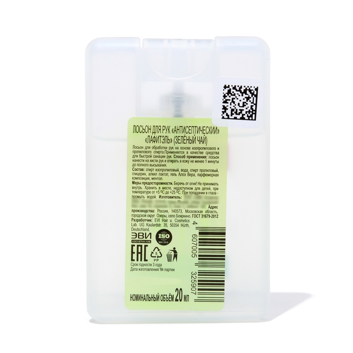 Антисептик для рук Lafitel "Зеленый чай", лосьон, 20 мл