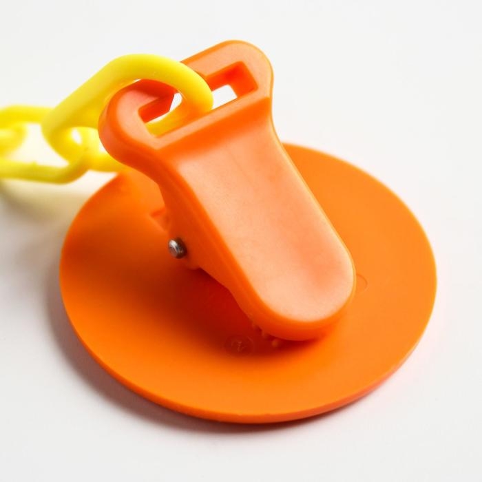 Крепится на одежду ребёнка с помощью клипсы.