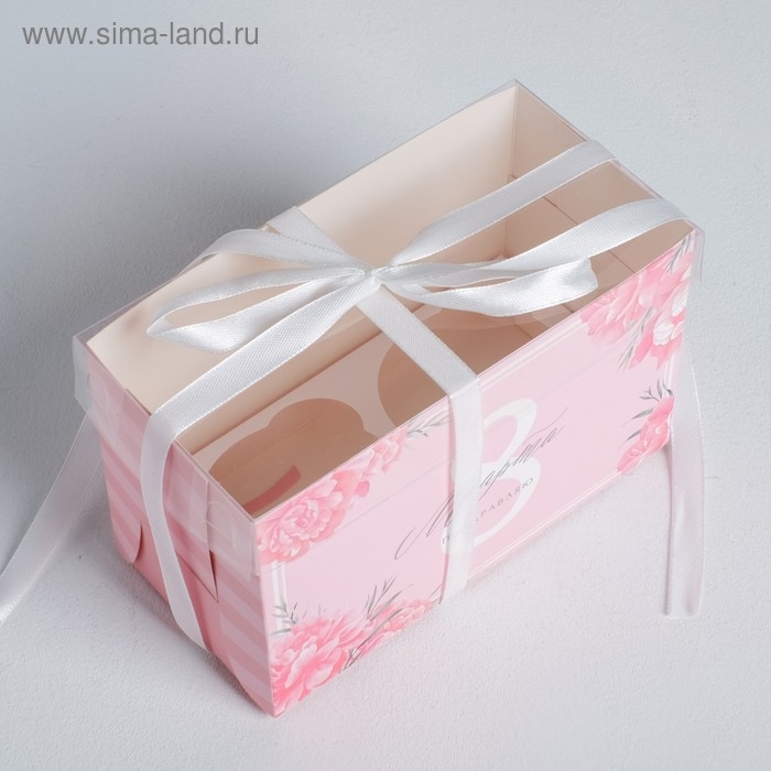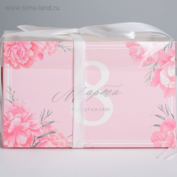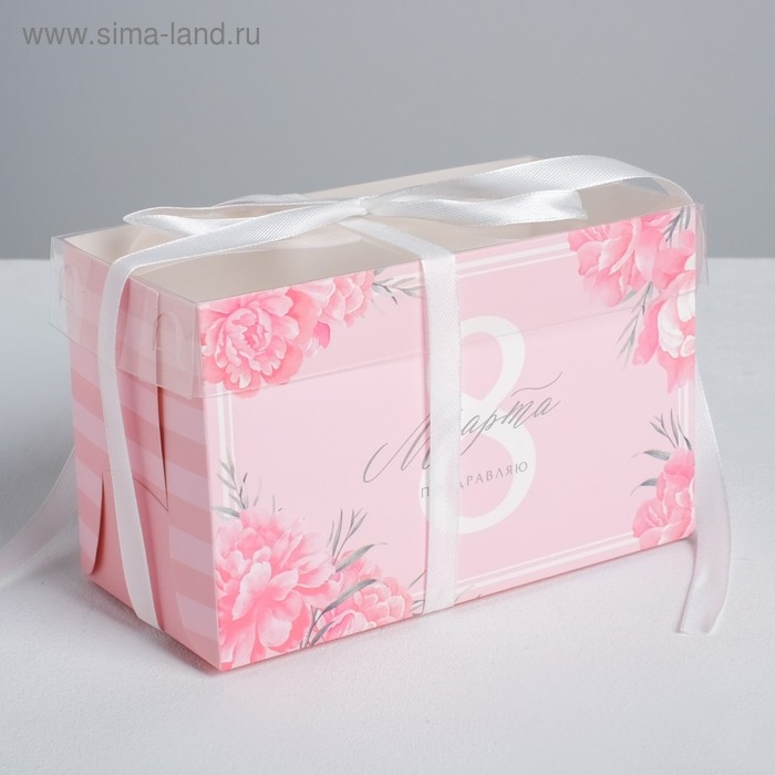 Коробка для капкейков, кондитерская упаковка, 2 ячейки «Поздравляю с 8 марта», 16 х 8 х 10 см