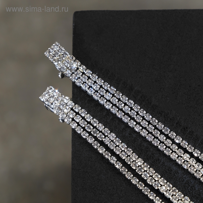 Клипсы «Лёд» классика 2 ряда, цвет белый в серебре