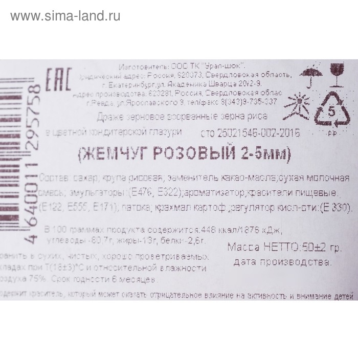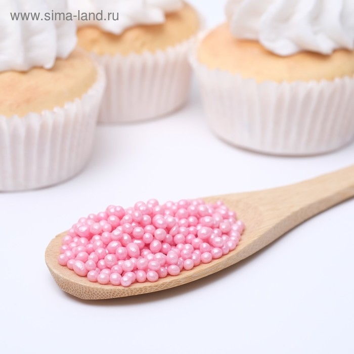 Посыпка кондитерская "Жемчуг", взорванные зерна риса, розовый, 2-5 мм 50 г