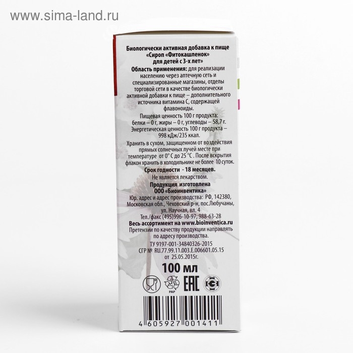 Сироп «Фитокашлёнок» для детей с 3-х лет, подорожник и чабрец, 100 мл