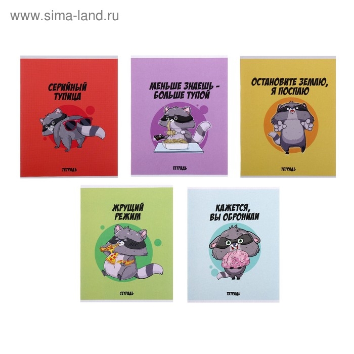 Тетрадь 48 листов в клетку Calligrata "Дерзкий енот", обложка мелованный картон, блок офсет, МИКС