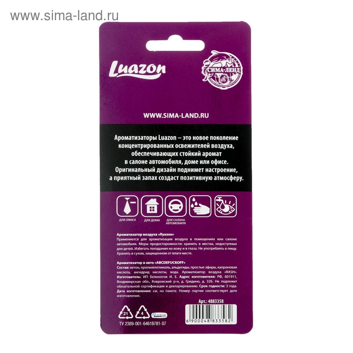 Ароматизатор в машину Luazon «ABCDEFUCKOFF», аромат чёрный лёд