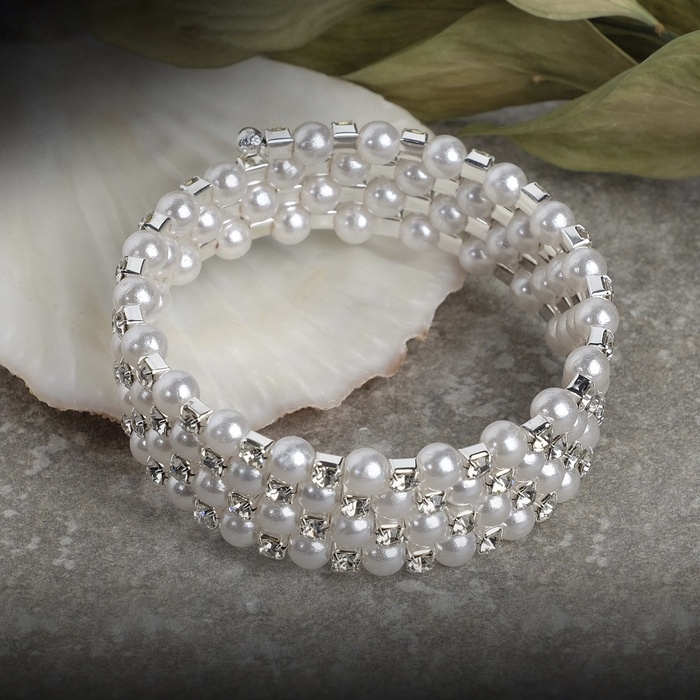 Браслет жемчуг «Невеста» бусины d=0,5, 4 ряда пружинкой, цвет молочный
