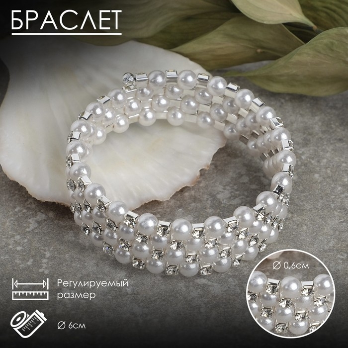 Браслет жемчуг «Невеста» со стразами, шар № 6, цвет белый, d=5,5 см
