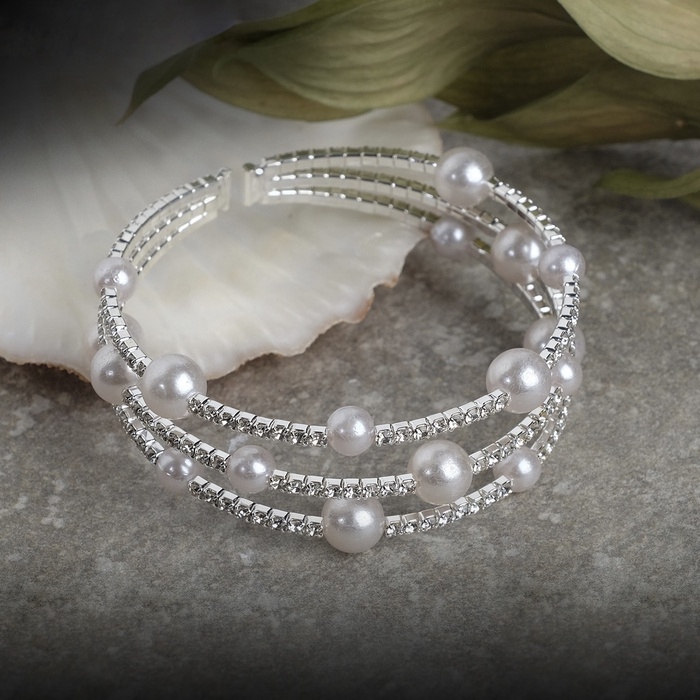 Браслет жемчуг «Невеста» со стразами, шар № 6, цвет белый, d=5,5 см