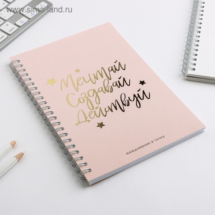 Ежедневник А5, 60 листов в точку «Мечтай.Создавай.Действуй . НЮД»