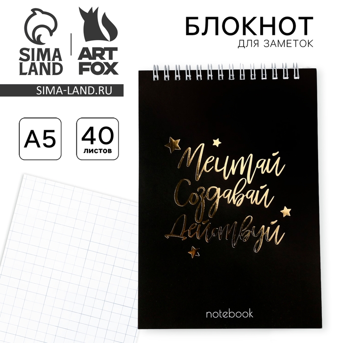 Блокнот А5, 40 листов. На гребне в клетку «Мечтай.Создавай.Действуй»