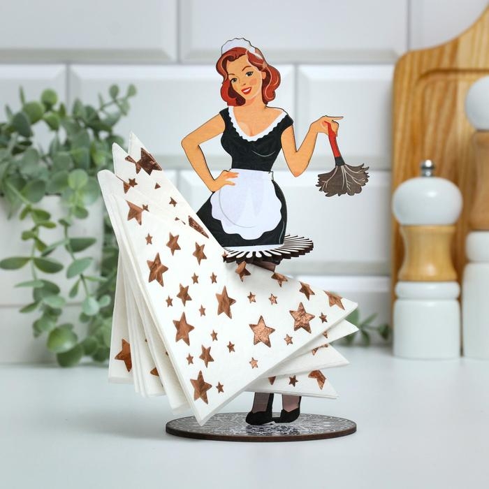 Салфетница деревянная «Девушка горничная», цветная наклейка