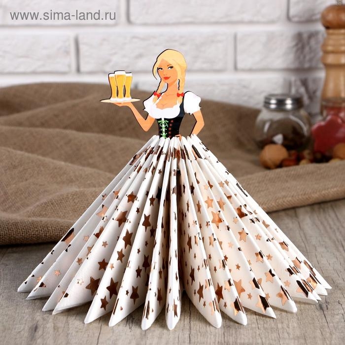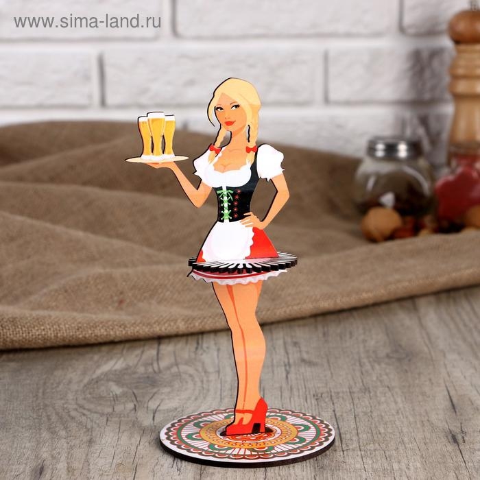 Салфетница деревянная «Девушка официантка с пивом с косами», цветная наклейка