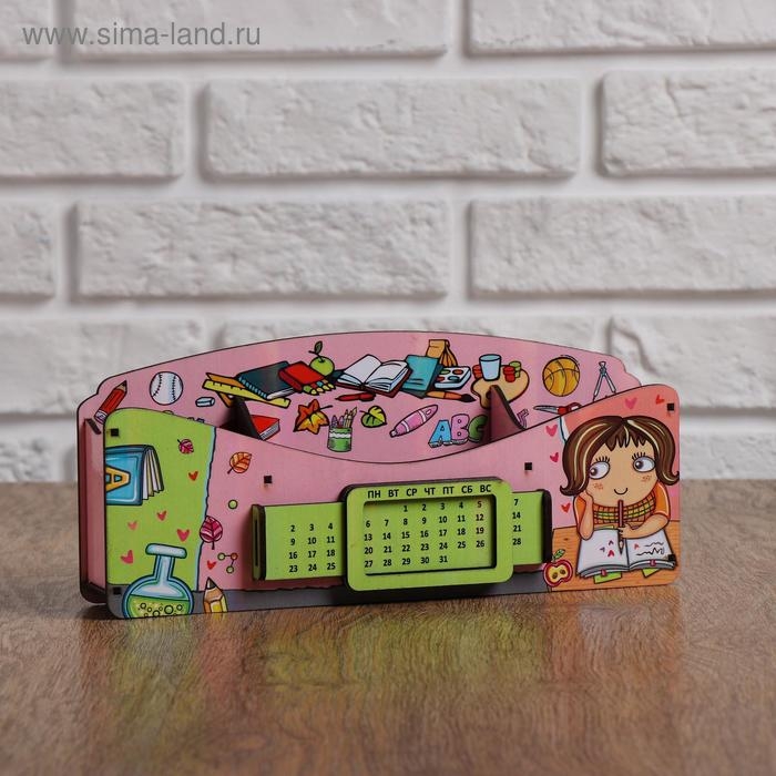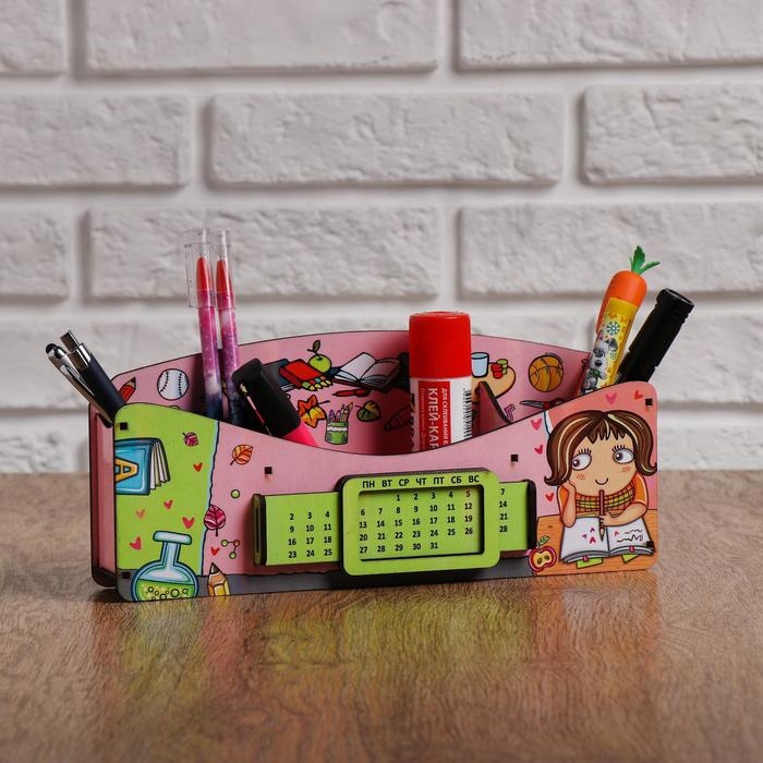Органайзер для канцелярских предметов "Школа удобств", вечный календарь, цветной, розовый