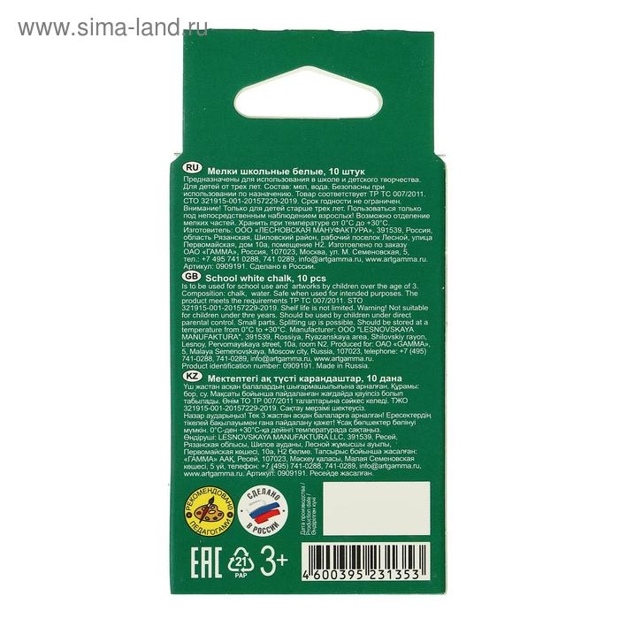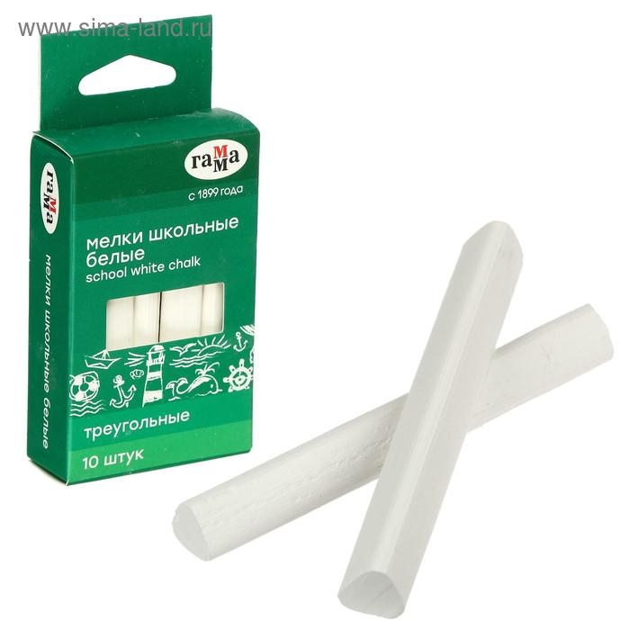 Мелки для рисования "Гамма", белые, 10 штук, мягкие, треугольная форма, картонная коробка