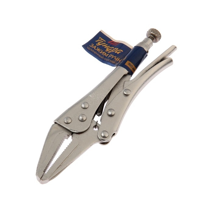 Зажим ручной ТУНДРА, удлиненный плоский захват, с фиксатором, 160 мм