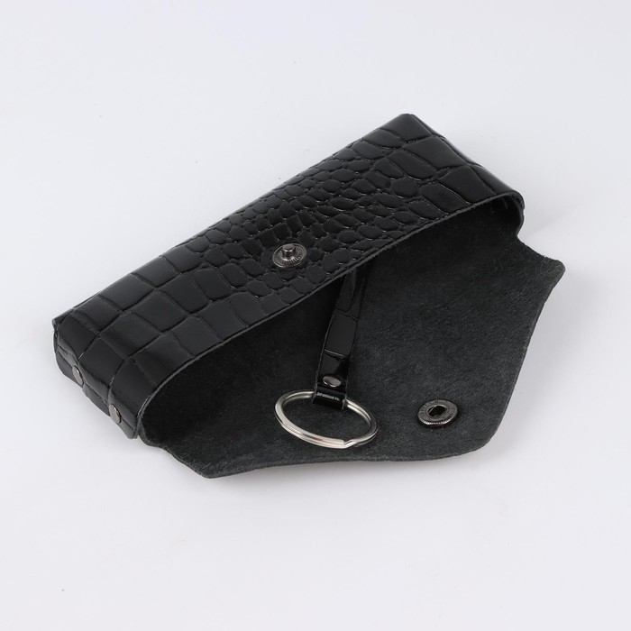 Ключница на кнопке TEXTURA, длина 15 см, металлическое кольцо, цвет чёрный