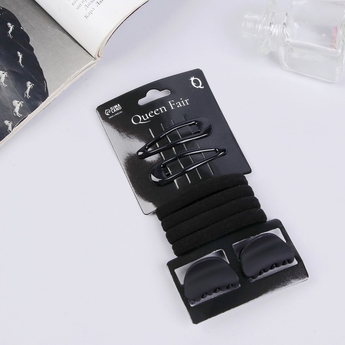 Набор для волос "Новия" (2 невидимки 5 см, 4 резинки, 2 краба 3 см) чёрный