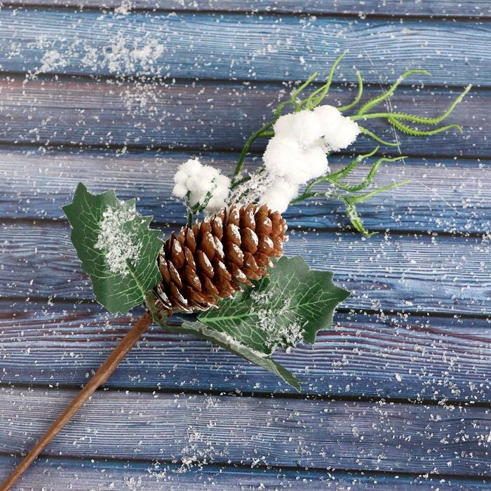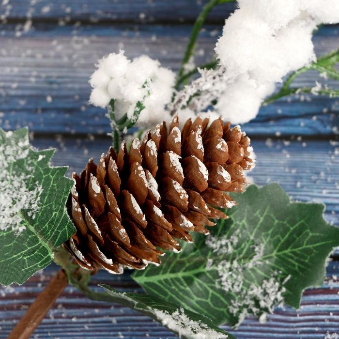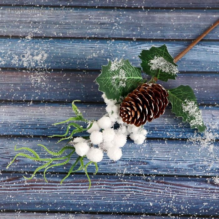Новогодняя ветка декоративная «Зимнее волшебство. Очарование», пластик, шишка, ягоды в снегу, 25 см