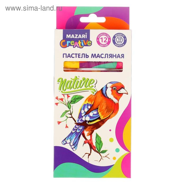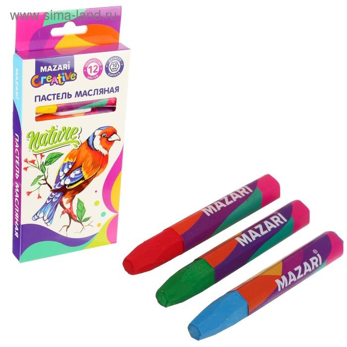 Пастель масляная Mazari, 12 цветов, шестигранный корпус, длина 73 мм, d корпуса 10 мм, картонная упаковка