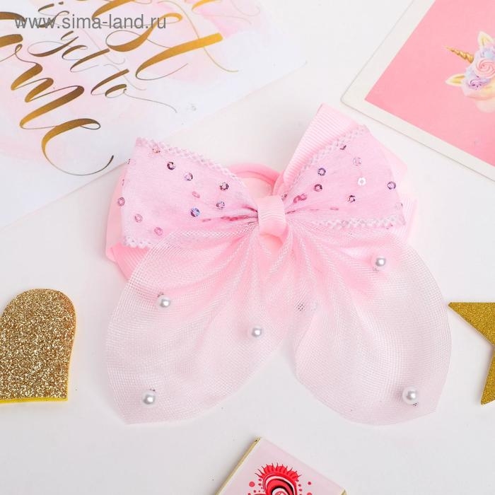 Резинка для волос "Бантик Лили с блёстками" 10х8 см, розовый