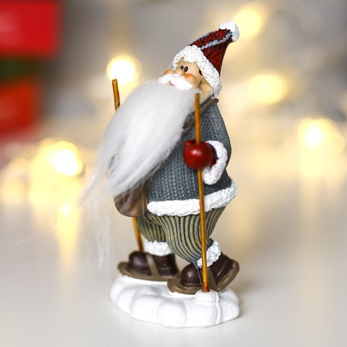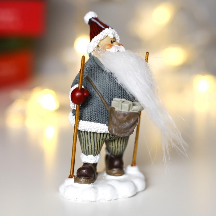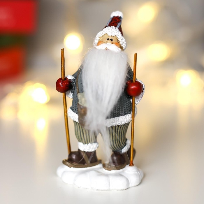 Сувенир полистоун "Дед Мороз с длинной бородой, на лыжах" 10,5х5,5х4 см