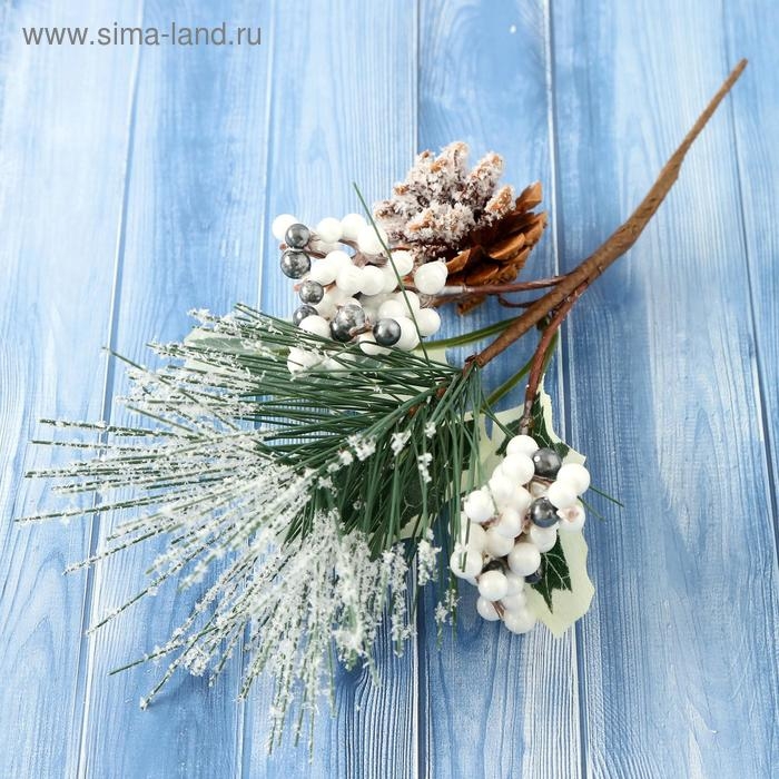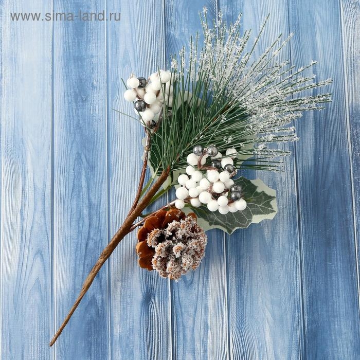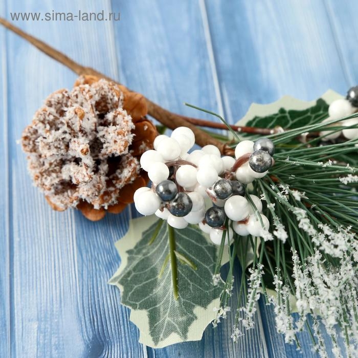 Еловая ветка новогодняя «Зимнее волшебство. Очарование», пластик, хвоя в снегу, шишка, ягоды, 21 см