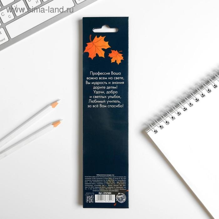 Магнитные закладки для книг в открытке «Учителю: Сила в знаниях», 4 шт.