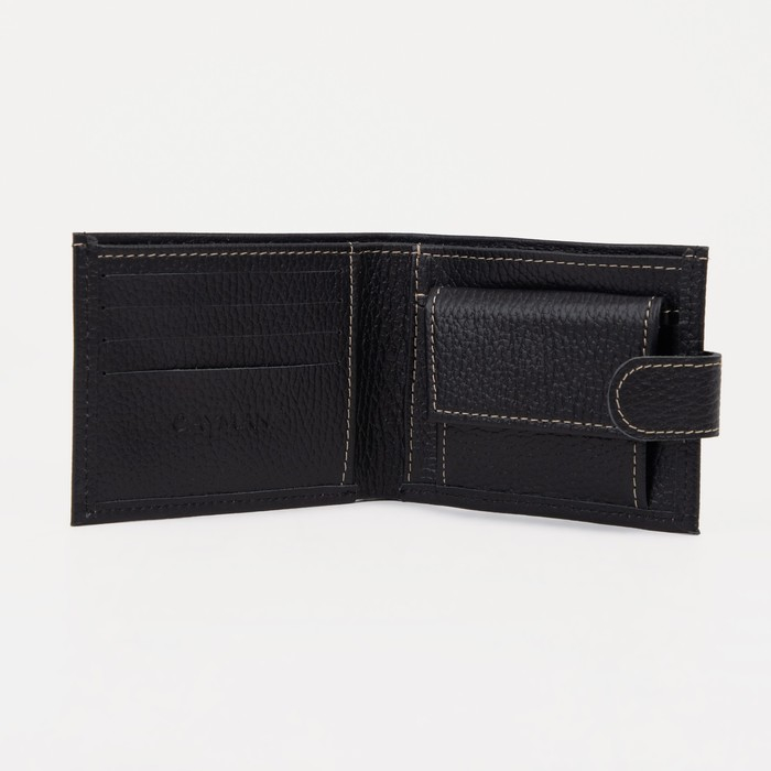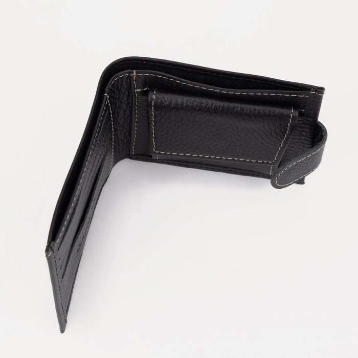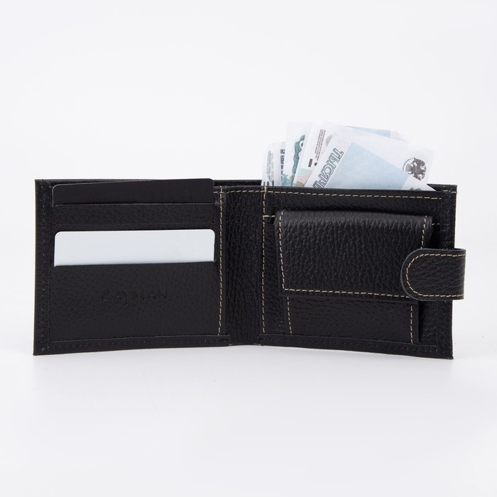 Портмоне мужское на кнопке, для купюр, для карт, для монет, цвет чёрный