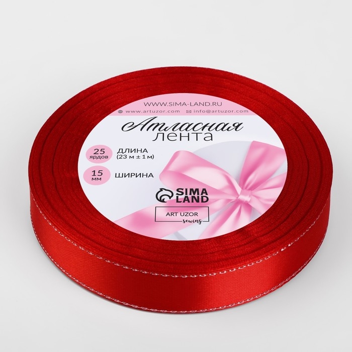 Лента атласная «Серебряные нити», 15 мм × 23 ± 1 м, цвет красный №026