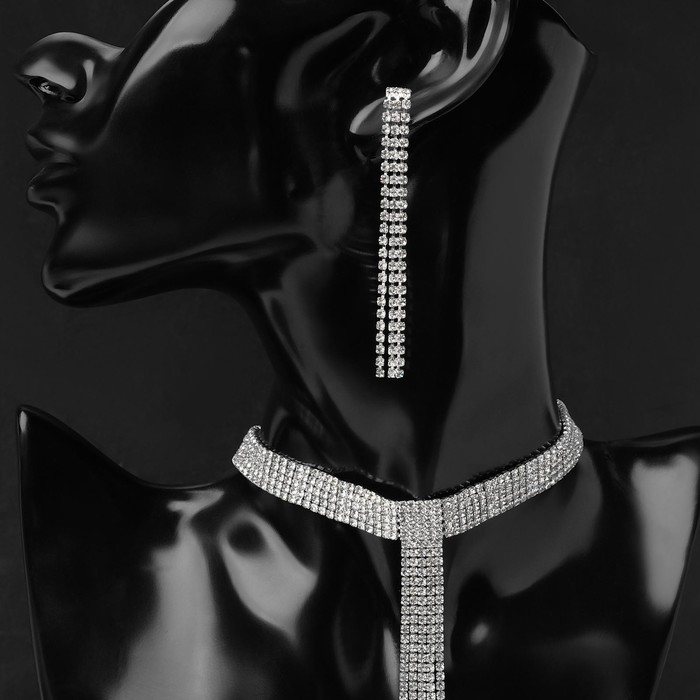 Набор 2 предмета: серьги, колье «Лёд» дорожка, цвет белый в серебре, 30 см