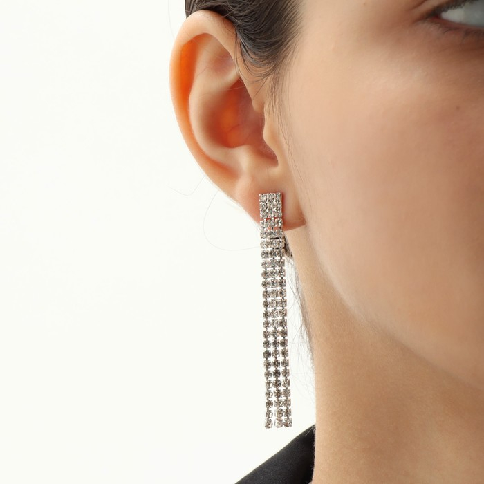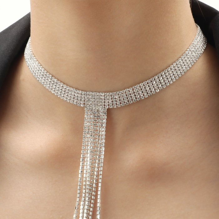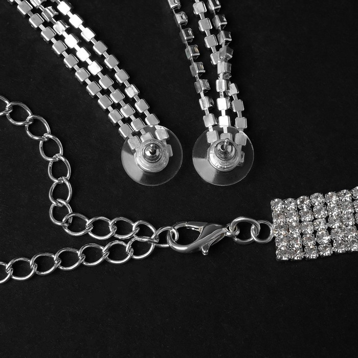 Набор 2 предмета: серьги, чокер «Лёд» 4 ряда, цвет белый в серебре, 44,5 см