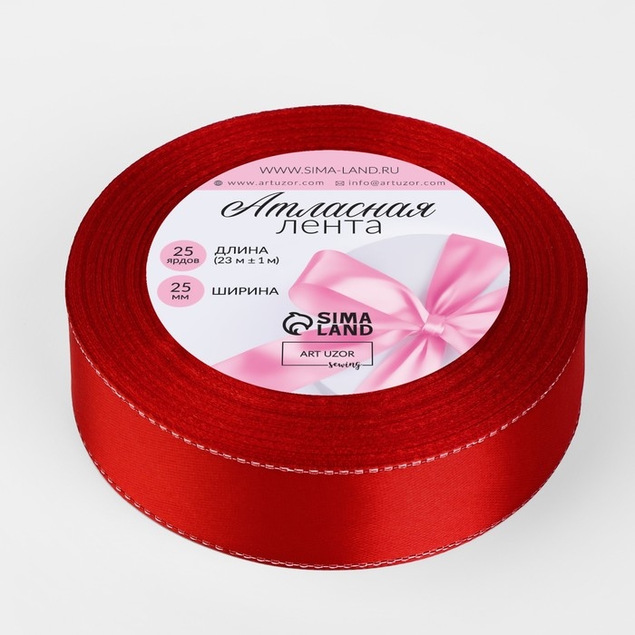 Лента атласная «Серебряные нити», 25 мм × 23 ± 1 м, цвет красный №026