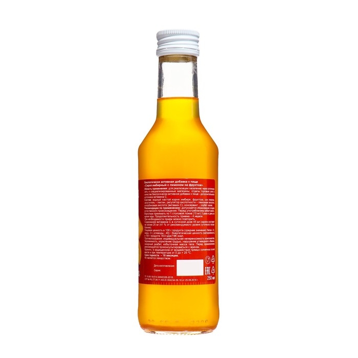 Сироп имбирный с лимоном на фруктозе, источник витамина С, 250 мл