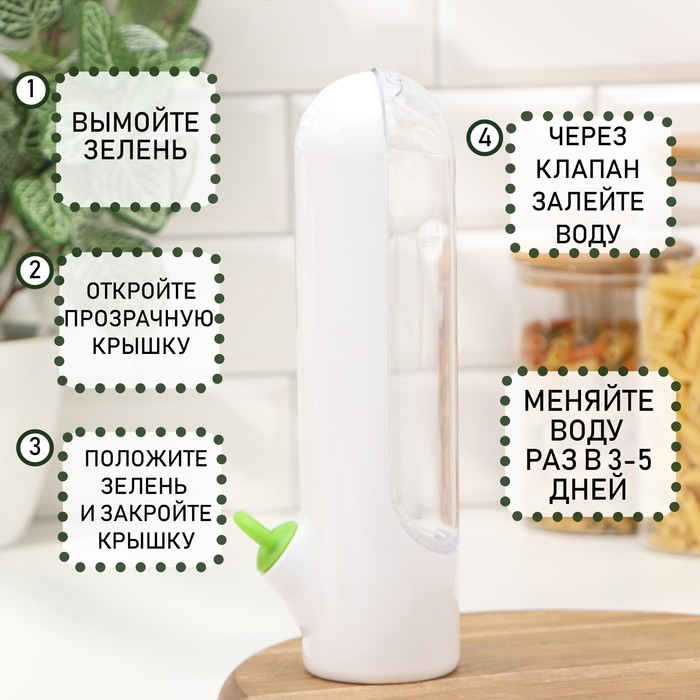 Прозрачная крышка позволит вам следить за сроком годности продукта, сохранить зелень свежей, вкусной и хрустящей.