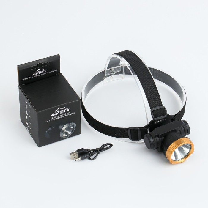 Фонарь налобный аккумуляторный "Мастер К.", 3 Вт, 800 mAh, 3.7 В, 100 лм, 1 режим, USB