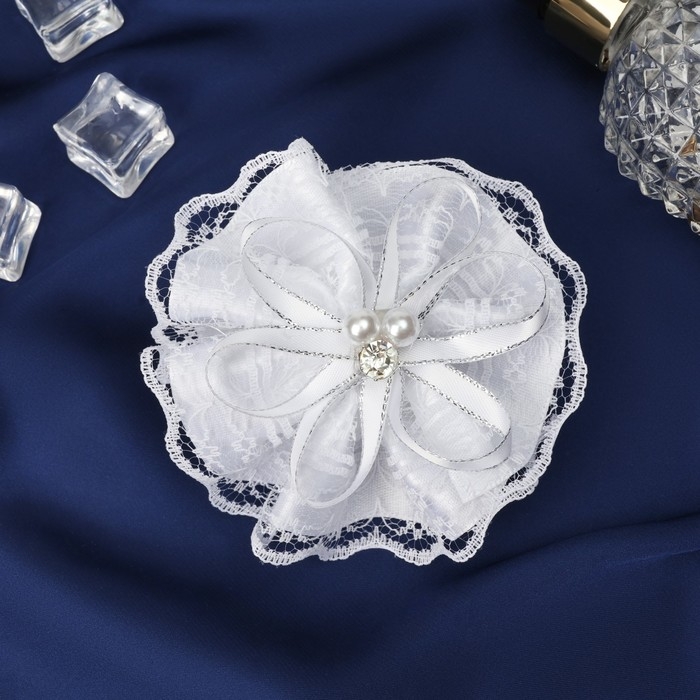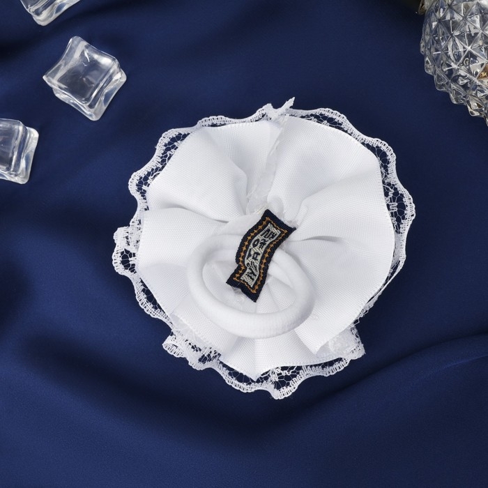 Резинка для волос бант "Школьница" кружева и бусинки, d-7 см, белый