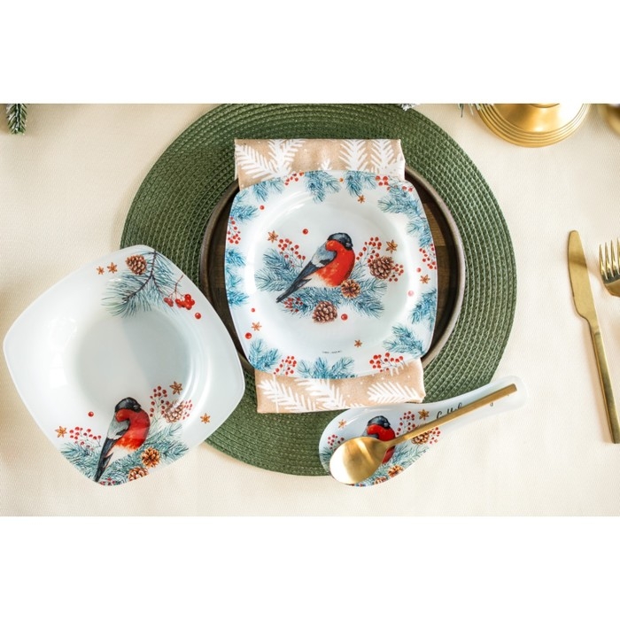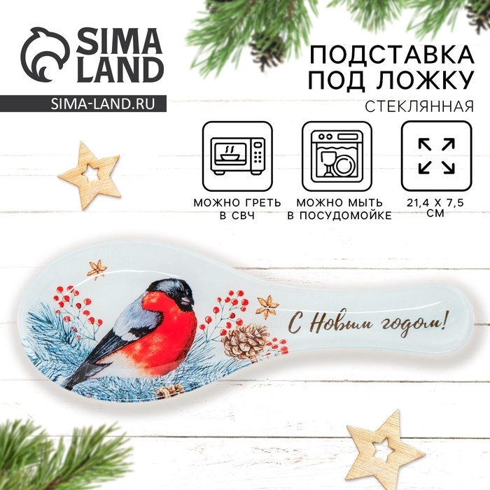 Подставка под ложку новогодняя Дорого внимание «Снегирь», 21,4 х 7,5 см, стекло
