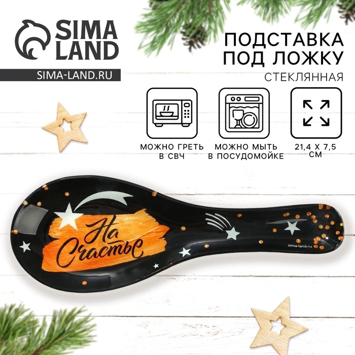Подставка под ложку новогодняя Дорого внимание «На счастье», 21,4 х 7,5 см, стекло