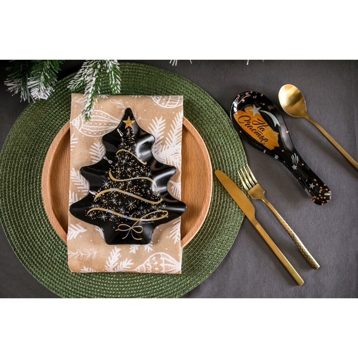 Новогодняя стеклянная подставка под ложку размером 21,4 х 7,5 см — отличный выбор для вашей кухни.