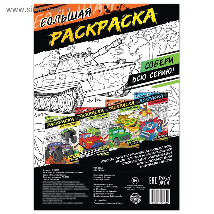 Раскраска по номерам «Военная техника», 16 стр., формат А4