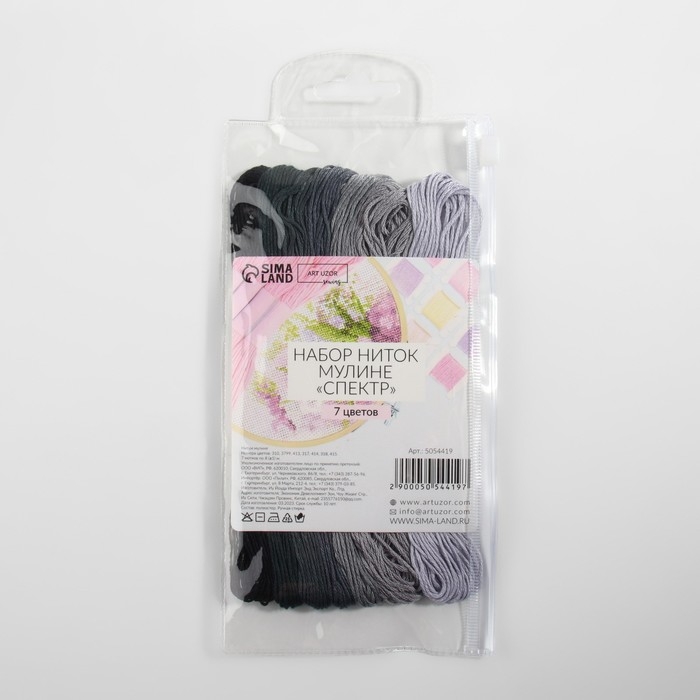 Набор ниток мулине, 8 ± 1 м, 7 шт, цвет серый спектр