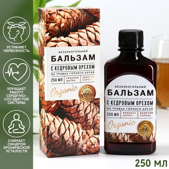 Бальзам на травах «С кедровым орехом»: красная щетка, золотой корень, в пластиковой бутылке, 250 мл
