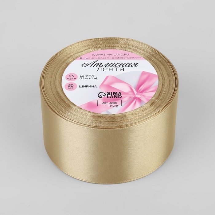 Лента атласная, 50 мм × 23 ± 1 м, цвет шампань №123