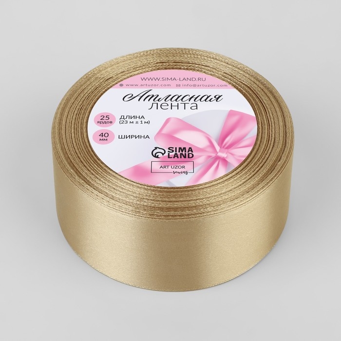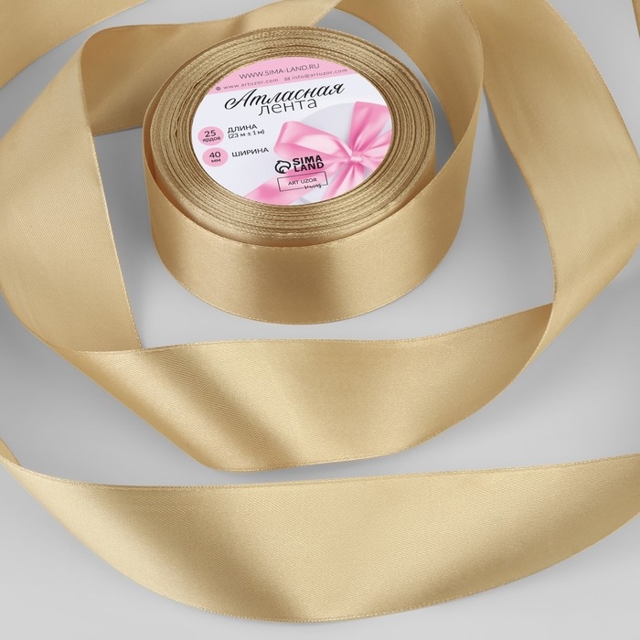 Лента атласная, 40 мм × 23 ± 1 м, цвет шампань №123
